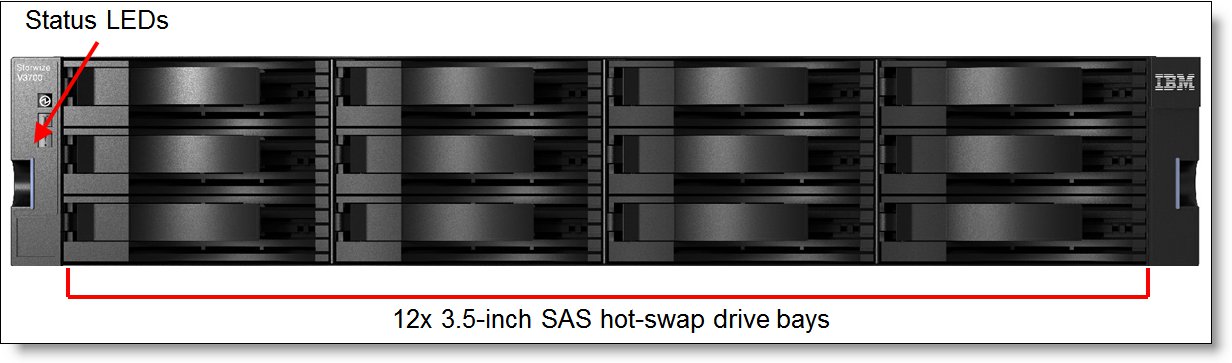 IntroductionIBM Storwize V3700 Storage System for Lenovo (Machine Type 6099) is a member of the IBM Storwize family of disk systems. By using IBM Storwize V7000 Storage System and IBM SAN Volume Controller functions, interoperability, and management tools, Storwize V3700 delivers innovation and new levels of storage efficiency with ease of use in an entry-level disk system to enable organizations to overcome their storage challenges. Storwize V3700 Storage System features two node canisters, with 4 GB cache per canister upgradeable to 8 GB, in a compact, 2U, 19-inch rack mount enclosure. A 6 Gb SAS and 1 Gb iSCSI connectivity is standard, with an option for 8 Gb Fibre Channel (FC) or 10 iSCSI or Fibre Channel over Ethernet (FCoE) connectivity. Storwize V3700 supports up to 240 drives with up to nine external expansion units. It also offers flexible drive configurations with the choice of 2.5-inch and 3.5-inch drive form factors, 10 K or 15 K rpm SAS and 7.2 K rpm NL SAS hard disk drives (HDDs), and SAS solid-state drives (SSDs). The Storwize V3700 SFF enclosure is shown in the following figure.